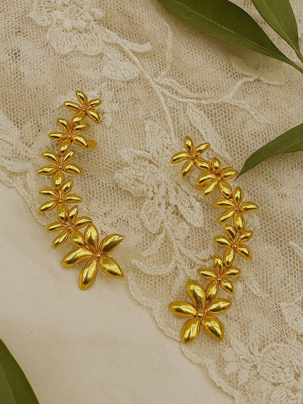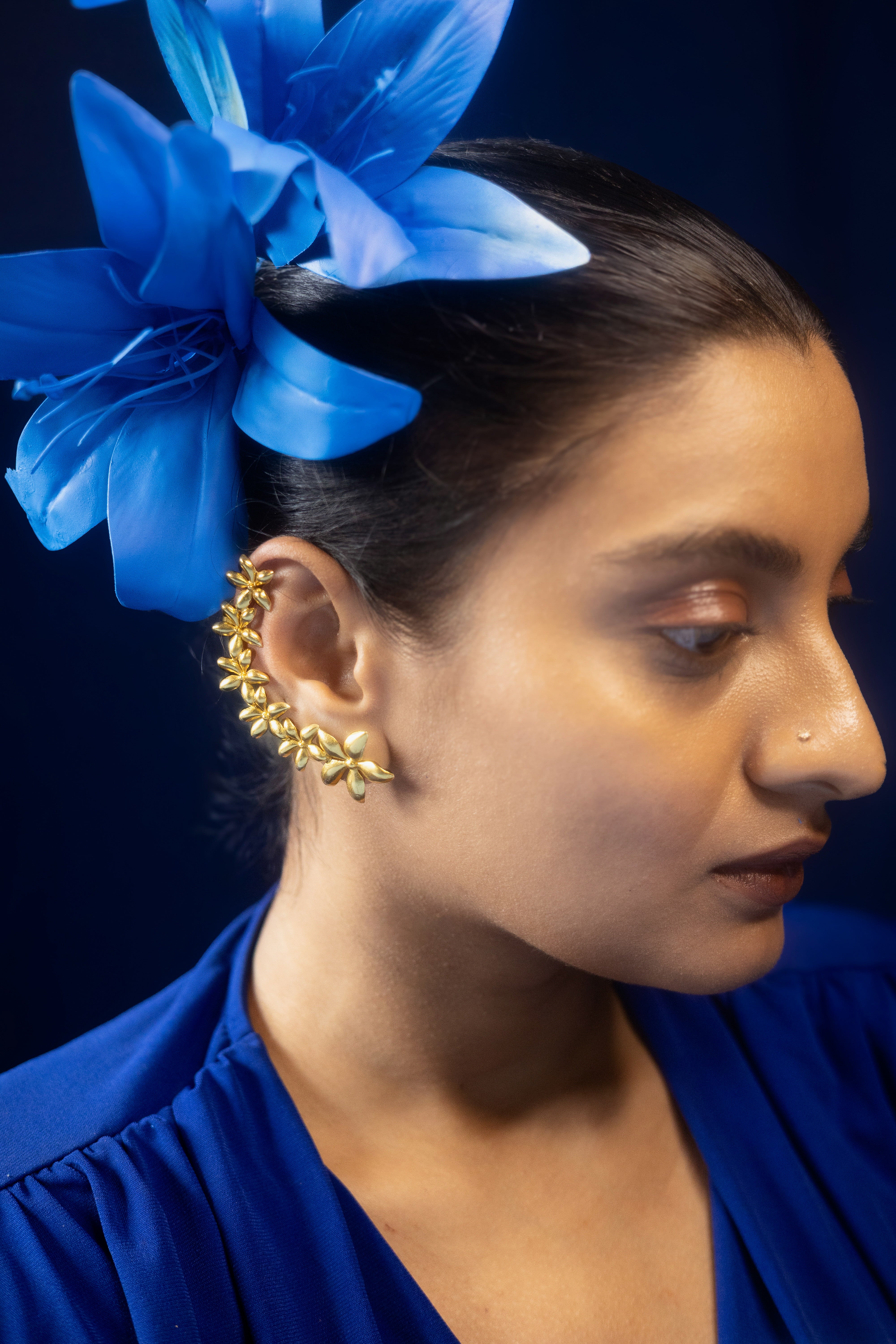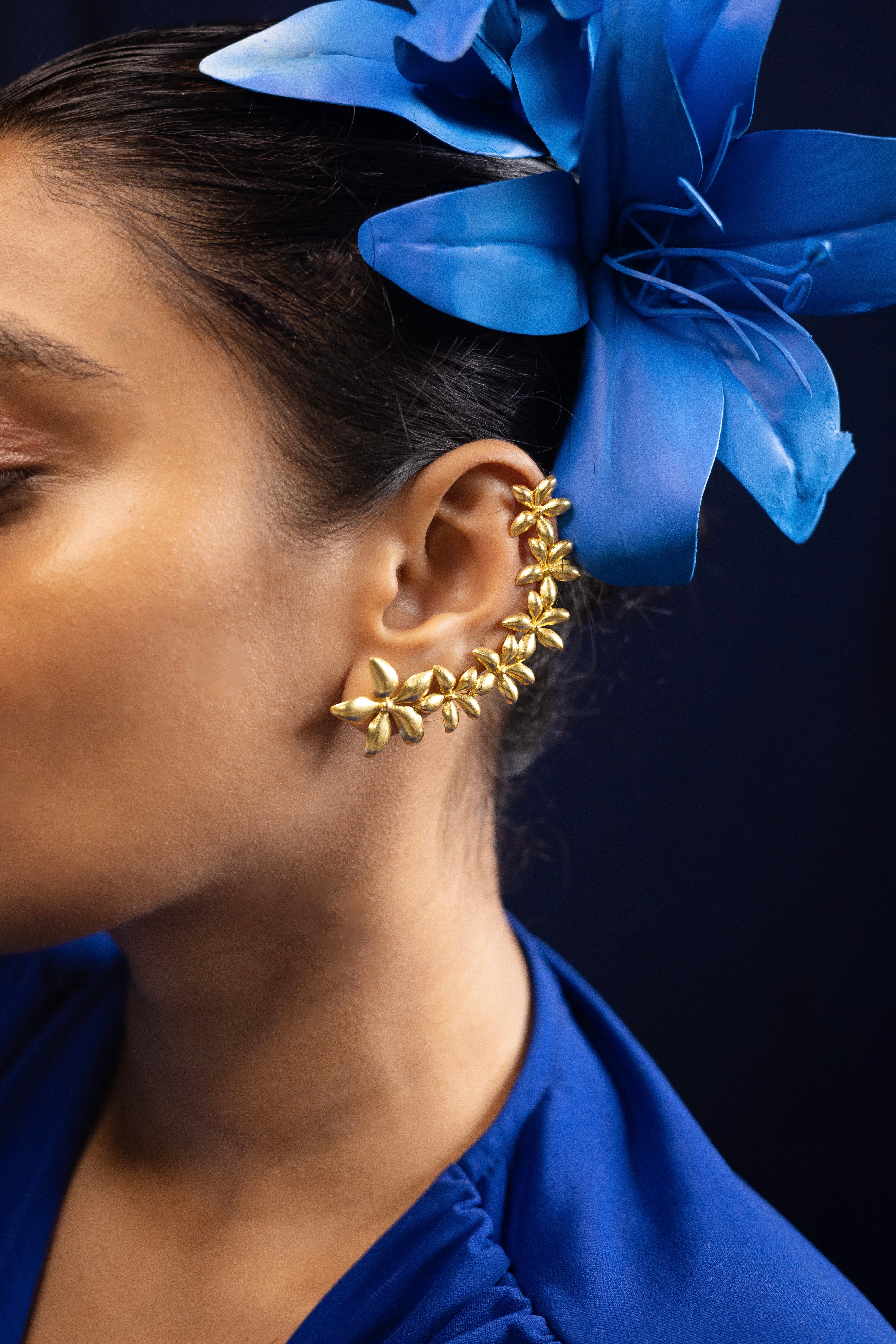 Inspired by the first rays of dawn, these floral gold ear climbers rise elegantly along the ear. Lightweight yet striking, Aurora Climb is perfect for day-to-night styling.