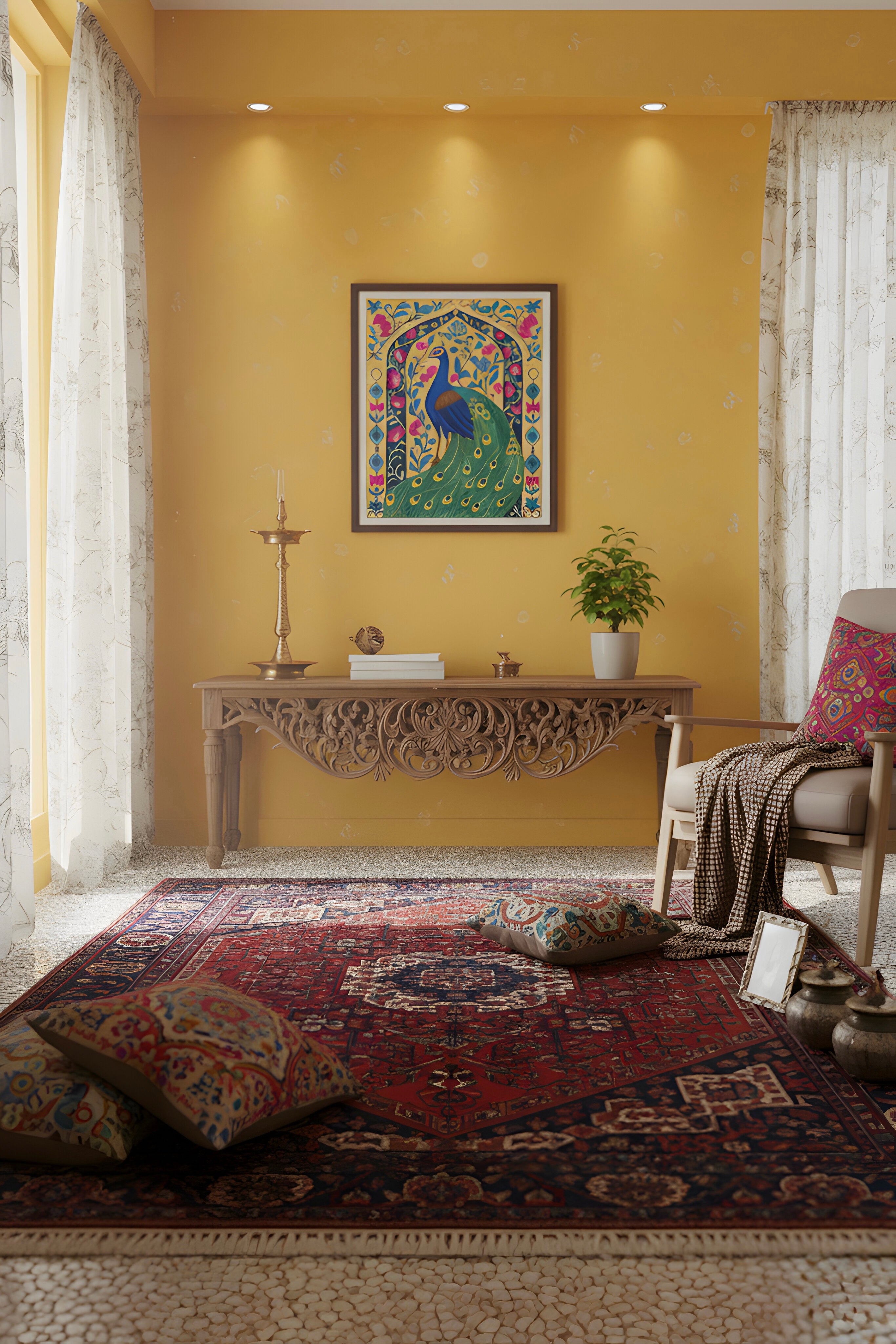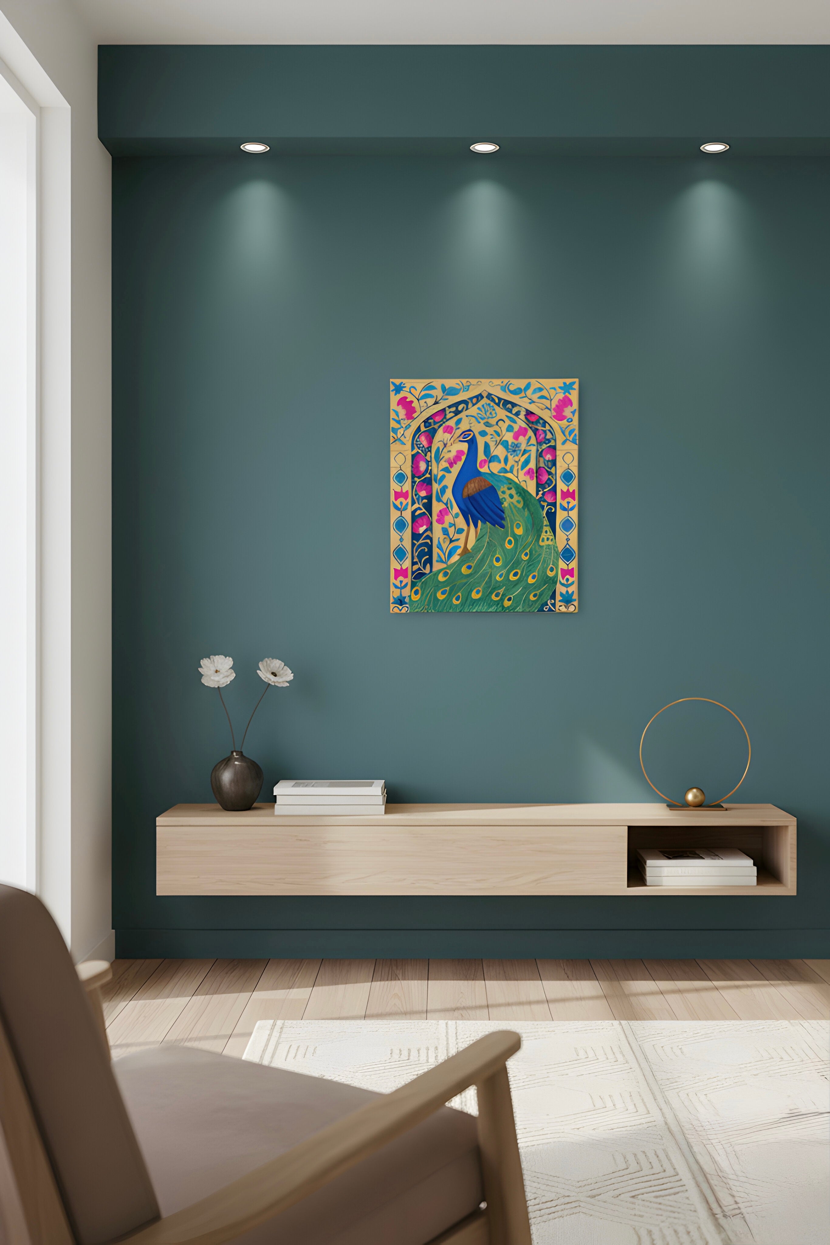 This is a handcrafted Pichwai painting, created with vibrant acrylic colours. Each piece is made to order.