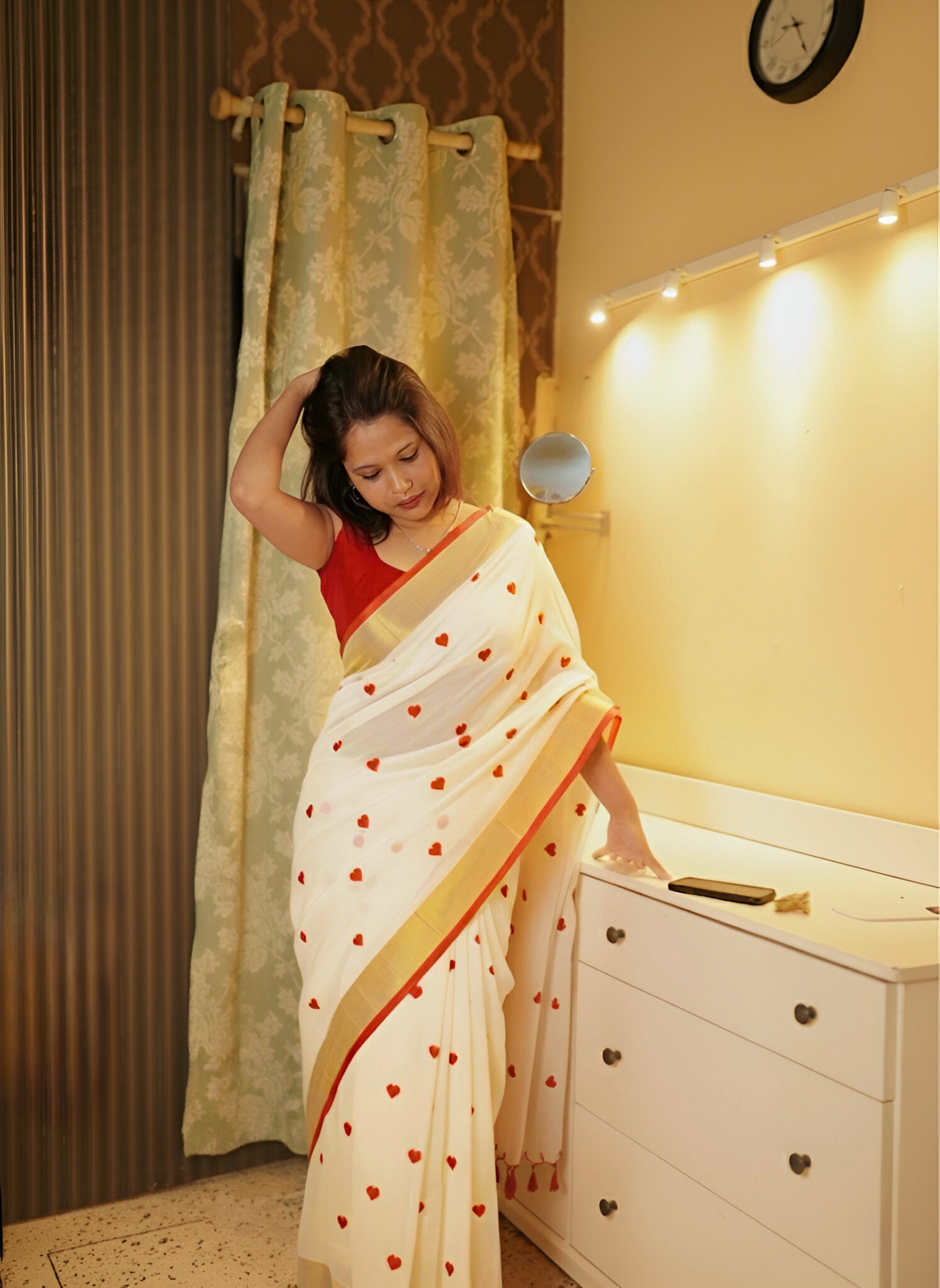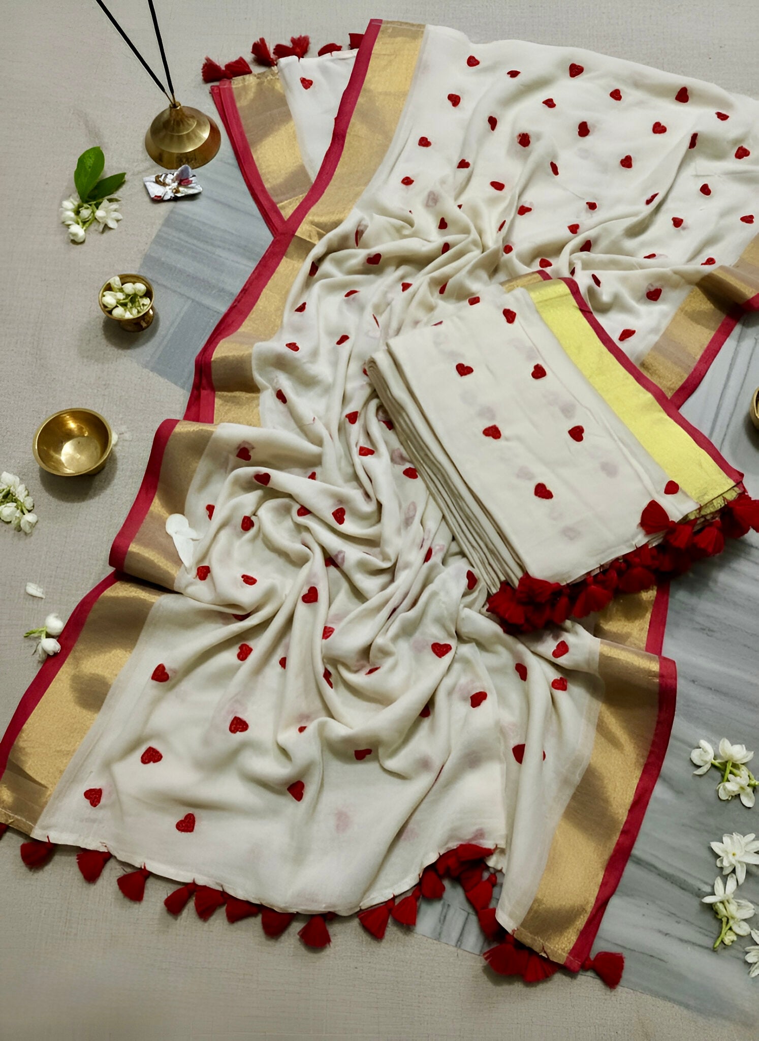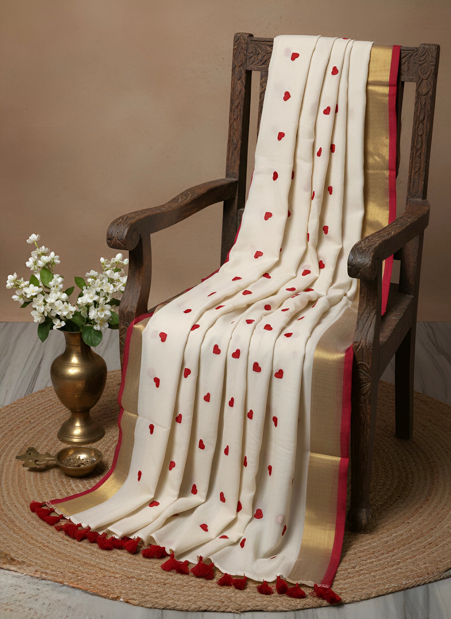 A Handloom item, pure mul cotton saree. It’s a make to order saree. It typically takes 5-7 days to loom and dispatch.