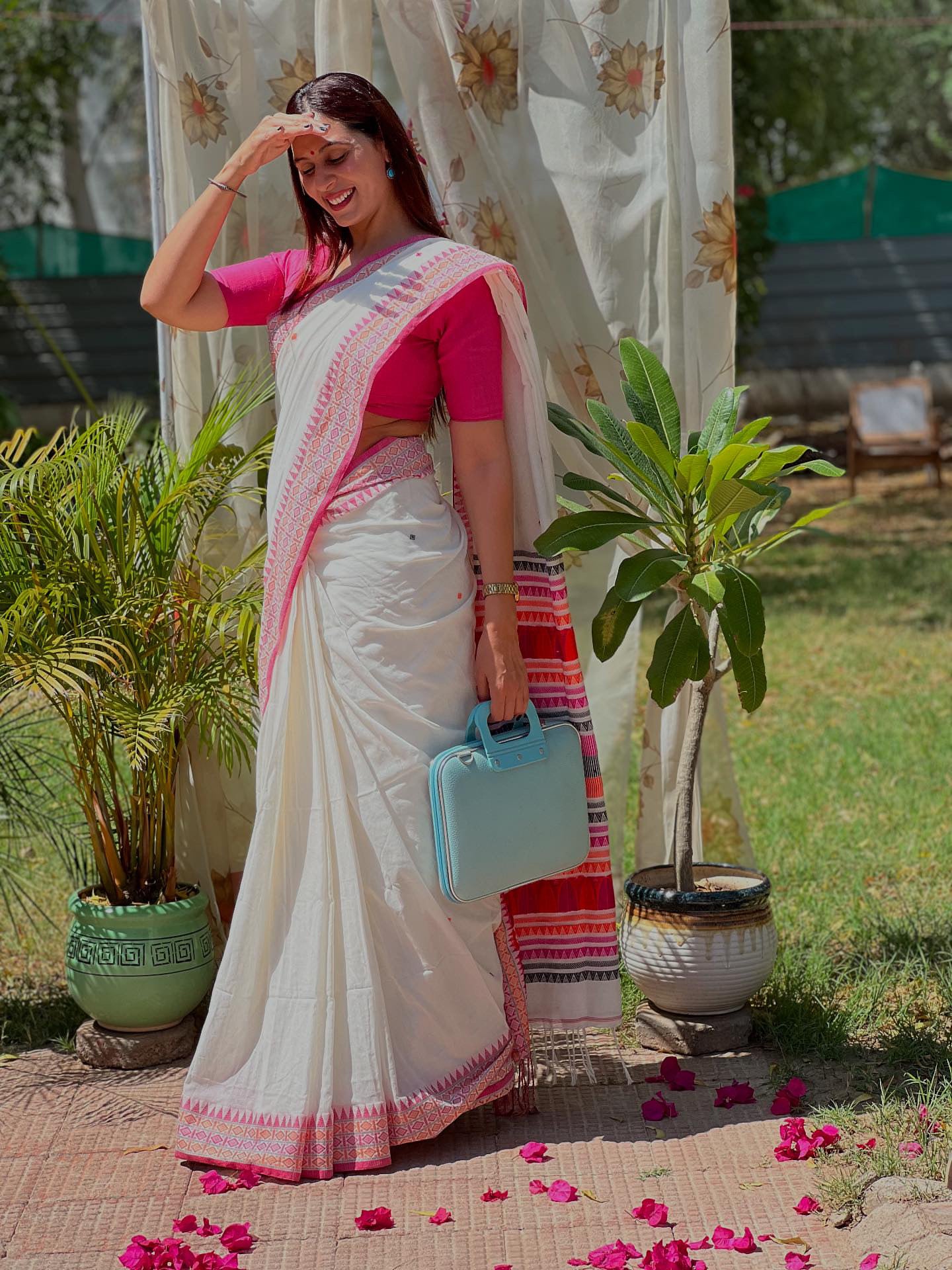 A Handloom item, pure cotton Khadi saree. It’s a make to order saree. It typically takes 5-7 days to loom and dispatch.