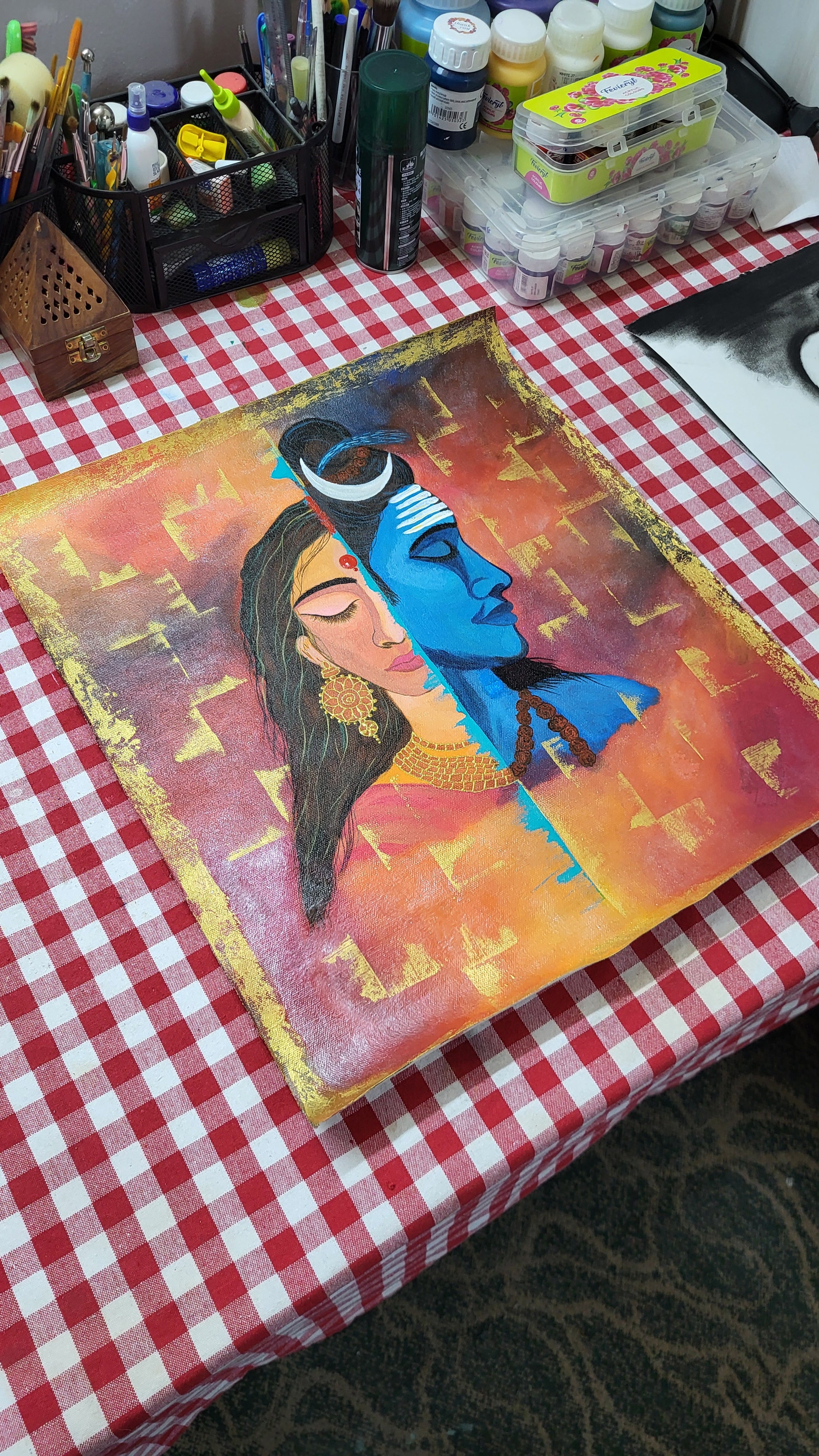 This is a handmade ShivShakti painting made with acrylic colors. Each piece is made to order.